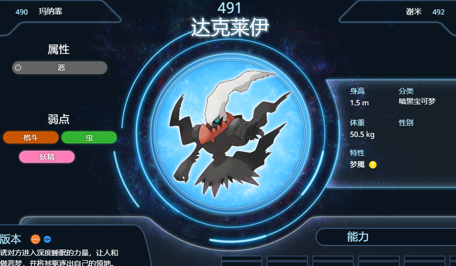 1、在寶可夢阿爾宙斯中,達克萊伊是惡屬性的寶可夢,特性是夢魘。