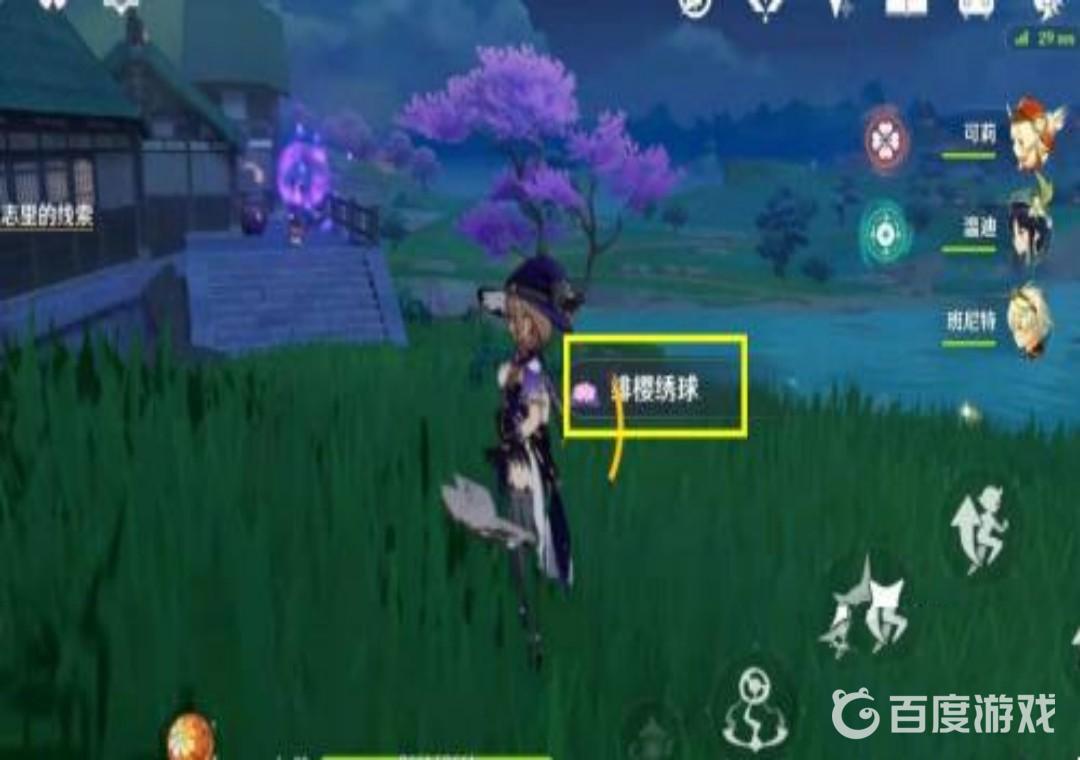 首先從稻妻傳送點,飛到下圖的緋政薪櫻繡球旁邊。