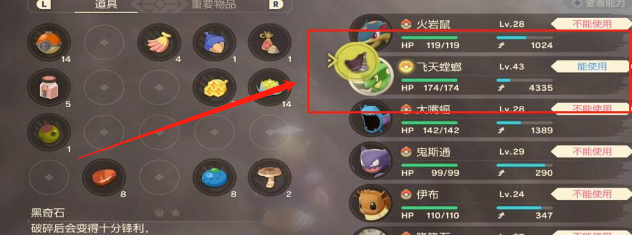 2.讓飛天螳螂使用黑奇石