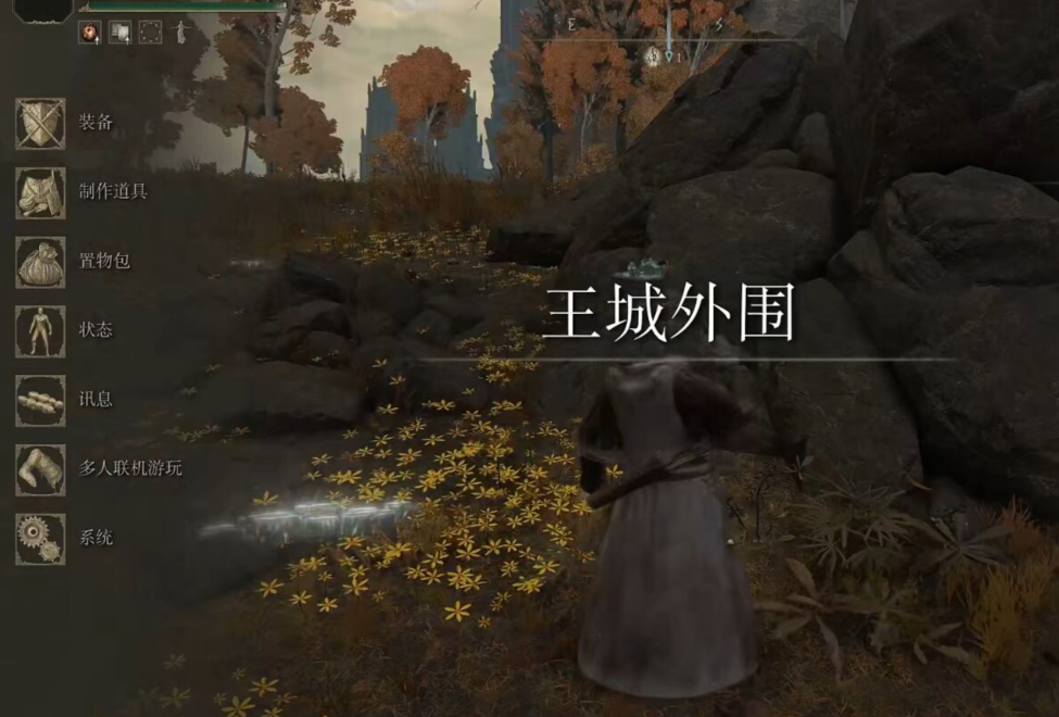 首頁 艾爾登法環 問答 艾爾登法環王城怎麼進? 2022-07-01 1、首先打開地圖到達下面位置。如圖所示:2、然後沿著一條小路一直往上走。3、到達王城外圍。4、然後擊敗龍庄大樹守衛。4、擊敗之後即可進入王城內部。