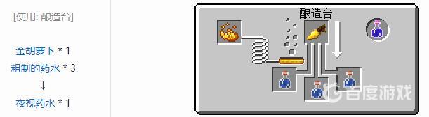 2,接著我們再添加金胡蘿卜,然後就可以成功釀造出夜視藥水了。