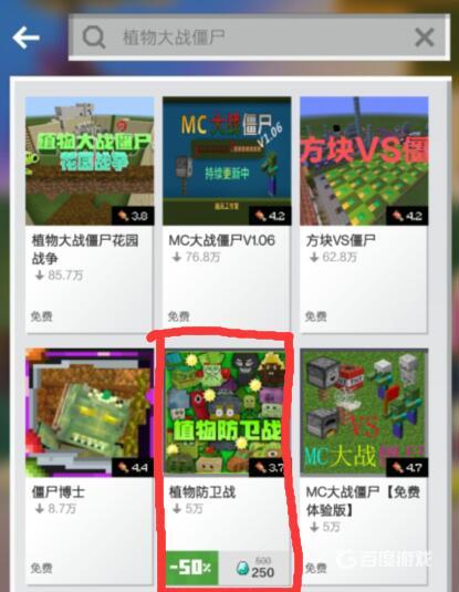 2,然後點擊上方的搜索按鈕,搜索植物大戰僵屍,點擊下方的模組進入界面。
