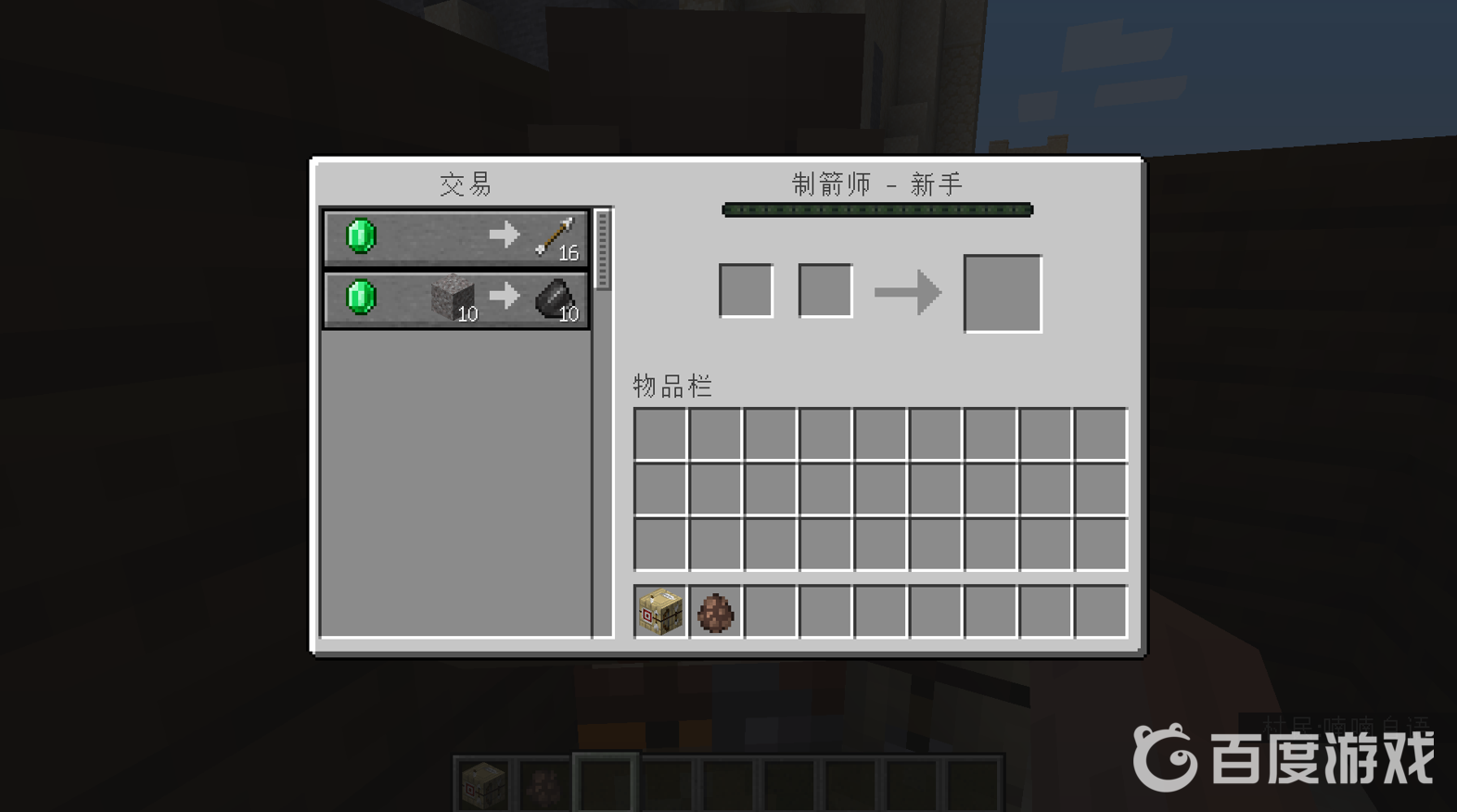 首頁 我的世界 問答 我的世界制箭台是干什麼的? 2023-02-09 1、進入游戲,玩家需要在一個小房子里放一個制箭台。2、玩家拿去村民刷怪蛋,刷出一個村民,可以看到,生成的無職業村民在制箭台旁邊會轉變為制箭師。3、右鍵點擊村民,可以看到有對應的職業出售的物品。