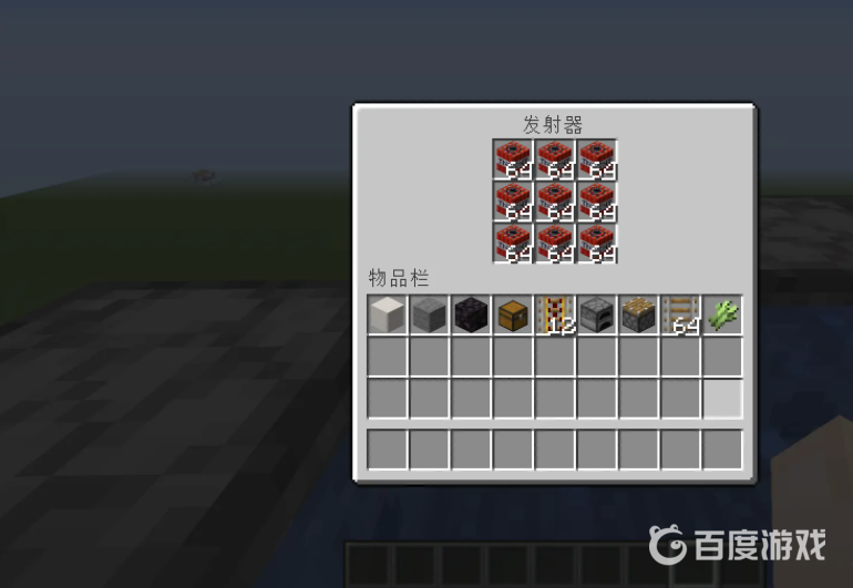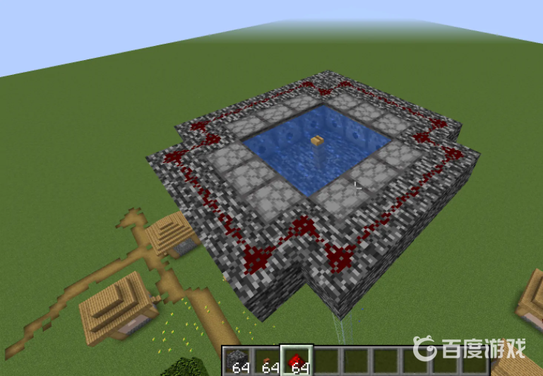 5、圍繞發射器放一圈基岩,圍繞基岩上放置一圈紅石。