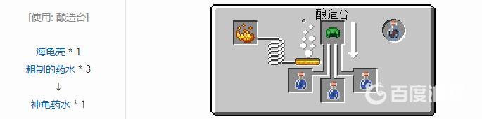 首頁 我的世界 問答 我的世界神龜藥水怎麼釀造?? 2023-02-09 用海龜殼和三瓶粗製藥水就可以釀造神龜葯水了。1,首先我們搜索並進入我的世界神龜葯水的相關說明。2,然後往下滑動,就可以發現神龜葯水的製作方法了。