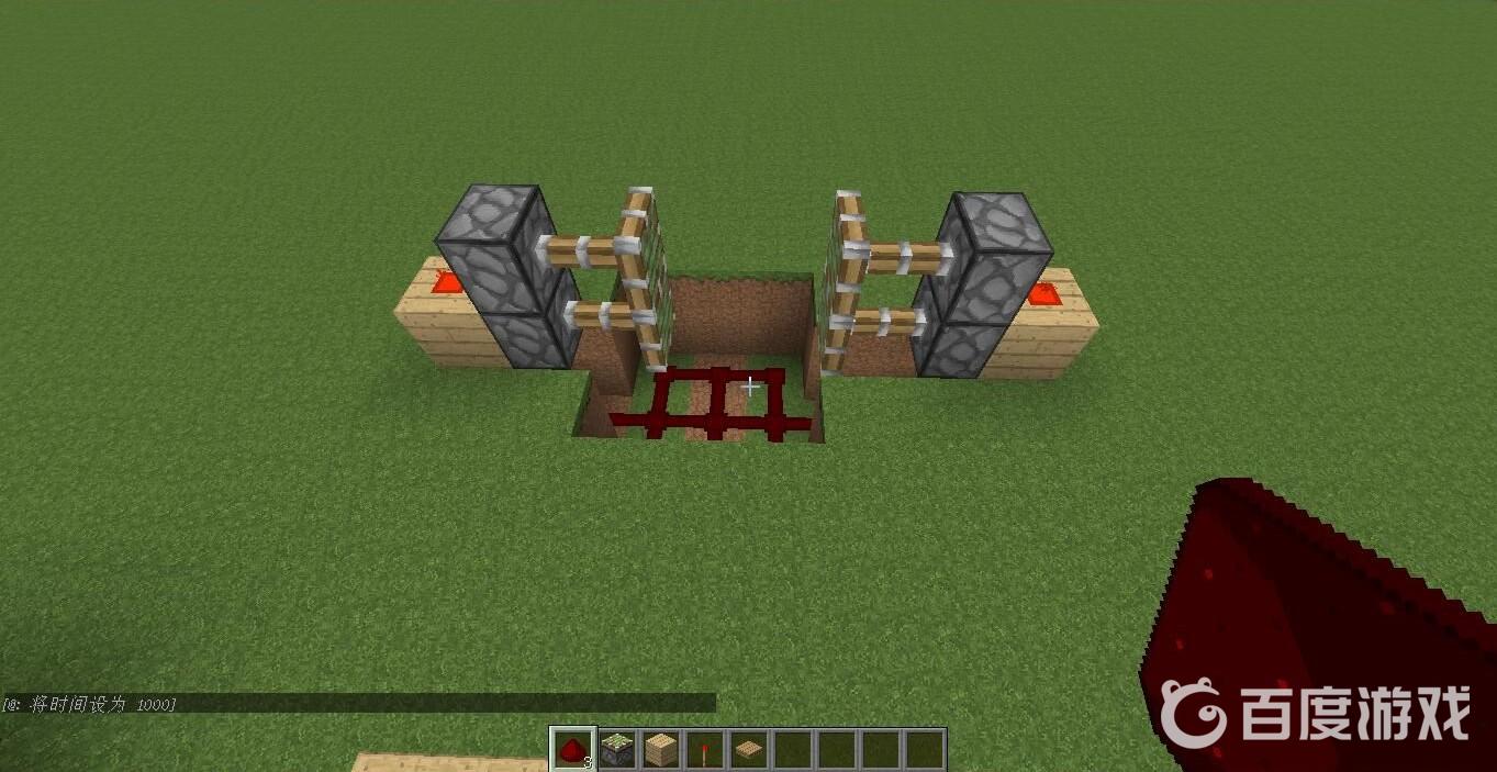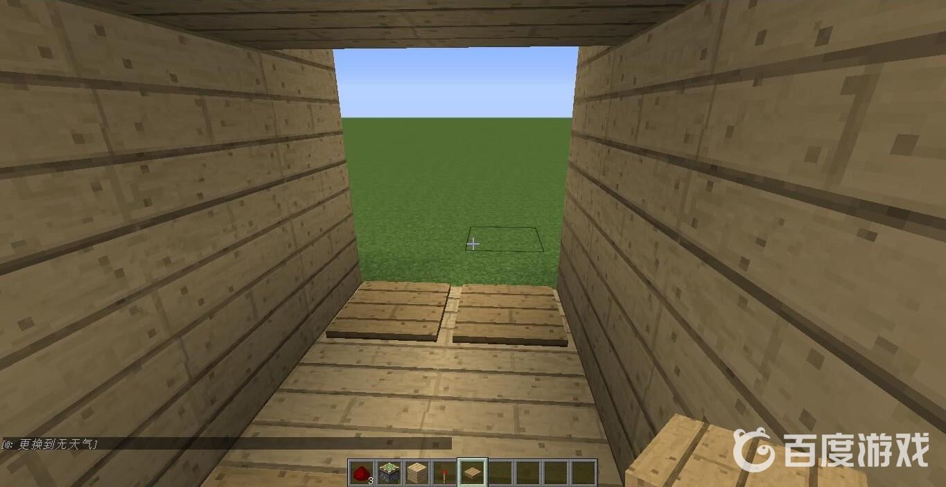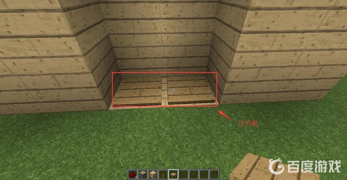 9、紅石機關製作完成,站在壓力板上門就會打開。