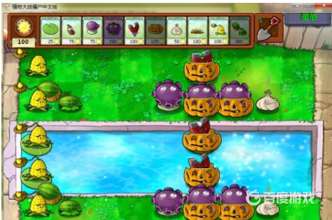 2,開局陣容,如下圖。留一百個陽光,以免蒜頭被吃掉。