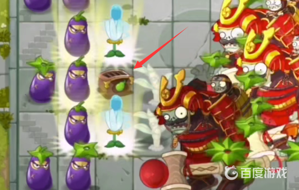 4、等到僵屍靠近中線的時候 把能量豆餵給錢箱 讓錢箱觸發周圍植物的大招