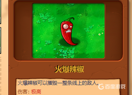3,火爆辣椒,辣椒的攻擊是整排的攻擊,可以把這一行里所有的僵屍清理掉