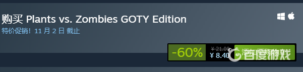 4、Plants vs. Zombies GOTY Edition 是付費遊戲需要購買後 才能下載(目前正在促銷價格為8.4元)