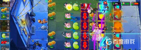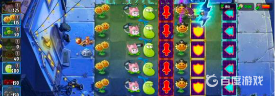 3、這個激光豆其實有點多餘了,如果是攜帶了肉盾植物,建議把貓尾草從第一列開始種,兩排以上貓尾草加上一排肉盾過關基本沒有問題了。依然還是要注意時空裂縫,第一行的全明星沖撞以及第五行的植物僵屍。