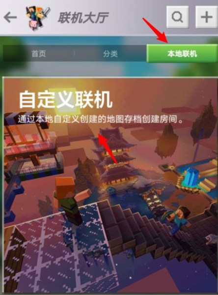 2.進入後,選擇本地聯機,點擊自定義聯機進入。