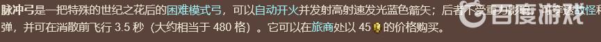 首頁 泰拉瑞亞 問答 泰拉瑞亞脈沖弓怎麼獲得? 2023-02-10 在旅商處以45個金幣的價格可以買到。脈沖弓是困難模式後的武器,也是旅商遇到怪物時會使用的武器,玩家在擊敗世紀之花後旅商會以45個金幣的價格出售給玩家。