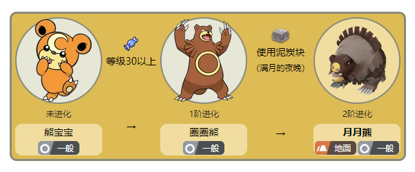 首頁 寶可夢傳說:阿爾宙斯 問答 寶可夢傳說:阿爾宙斯月月熊怎麼進化? 2022-07-01 在寶可夢阿爾宙斯中,月月熊已經是最終進化形態了,無法再進化下去,如下圖所示,月月熊是由圈圈熊進化而來的寶可夢,需要在滿月的夜晚對圈圈熊使用泥炭塊後,才能使其進化為月月熊。