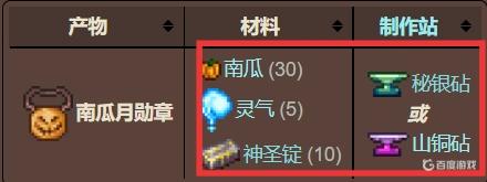 首頁 泰拉瑞亞 問答 泰拉瑞亞南瓜勛章怎麼合成? 2023-02-10 在遊戲《泰拉瑞亞》中,南瓜月勛章是一個世紀之花後的物品,用於召喚南瓜月事件。它只能在夜晚使用。試圖在白天使用它將不會觸發該事件,且此物品不會從物品欄里被消耗。玩家可以使用30個南瓜、5個靈氣和10個神聖錠在秘銀砧或山銅砧製作獲得。