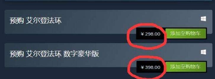 艾爾登法環Steam標准版的價格是298元人民幣,豪華版價格是398元人民幣。