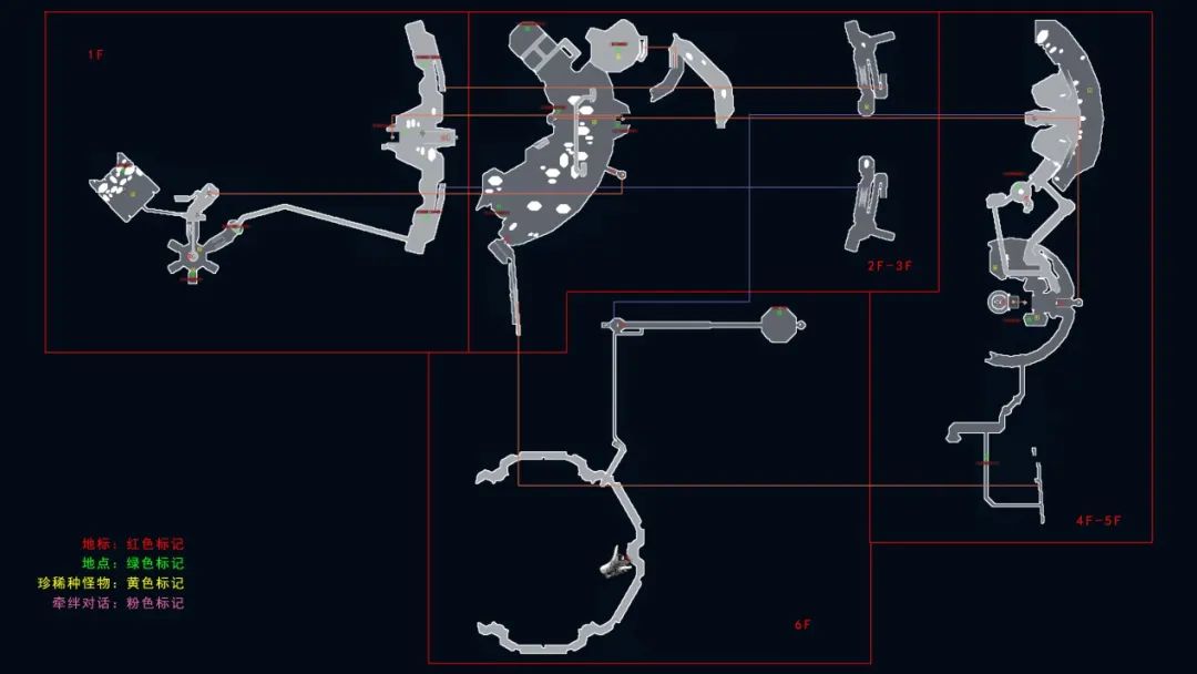 以下會附上中央工廠地圖全圖標記,包含了開全圖需要的地標與地點,以及珍稀種怪物資料。