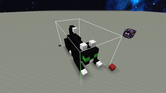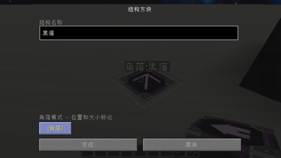 二、簡單的應用方法,拿黑貓為例,在黑貓外面、下一格放一個結構方塊開【角落模式】名稱是黑貓