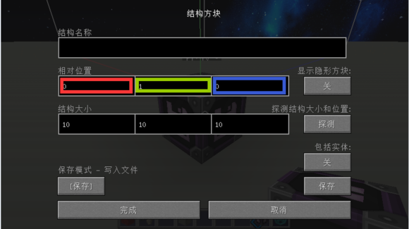 2.結構方塊的邊框和F3之後的指針一樣紅色是東西方向、藍色是南北方向、綠色是上下方向