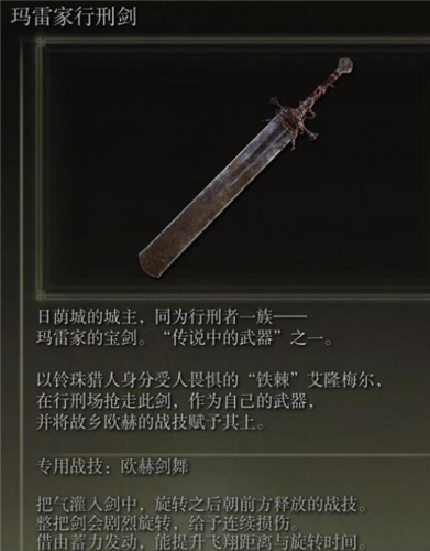 8、瑪雷家行刑劍:擊殺日蔭城boss掉落。
