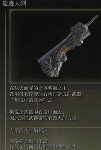 4、遺跡大劍:在獅子城擊殺碎星-拉塔恩將軍後再次來到獅子城廣場教堂和坐椅子上的npc對話,對話結束後去火點休息刷新,boss獅子混種 熔爐騎士將會刷新在獅子城廣場,擊殺後獲得遺跡大劍。