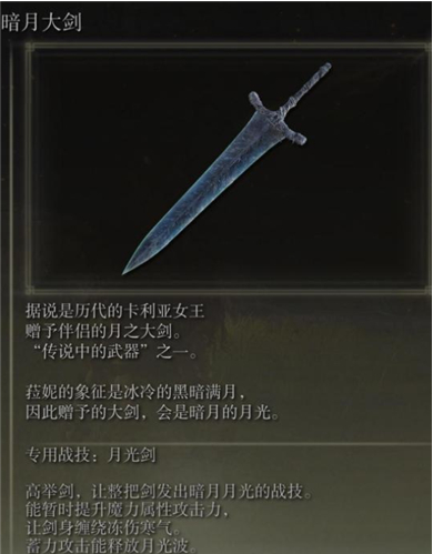 2、暗月大劍:完成魔法師菈妮全部支線後即可獲得。