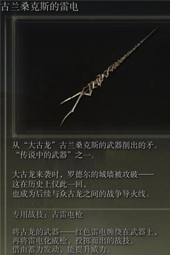 5、古蘭桑克斯的雷電:在王城打敗初始之王葛孚雷的化身後,可以激活黃金樹大教堂賜福點,從賜福點西門跑出坐電梯下來,出電梯即可看見紫色的可收集點,從黃金樹邊欄桿跳下在沿著上去即可。(PS:把王城燒了之後就沒了。)