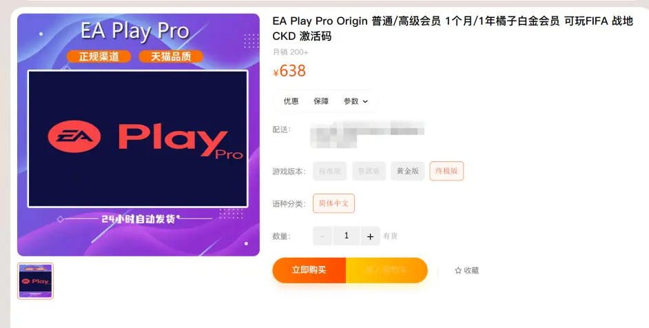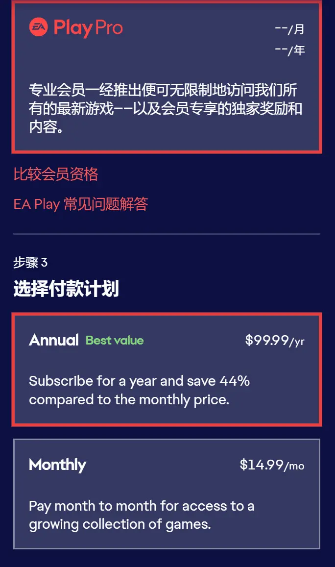 第3步:開通EA PLAY PRO(EA大會員),鏈接https://www.ea.com/ea-play/games-ea-play-pro