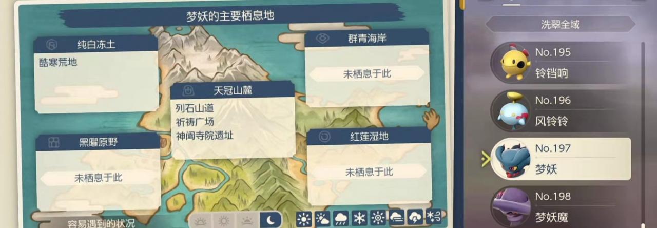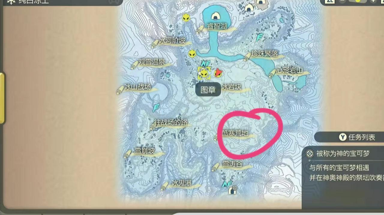 首頁 寶可夢傳說:阿爾宙斯 問答 阿爾宙斯夢妖在哪抓? 2022-07-01 1.寶可夢傳說:阿爾宙斯夢妖主要是在純白凍土的酷寒荒地和天冠山麓的列石山道、祈禱廣場、神闔寺院遺址出現。2.下面是這幾個地方的具體位置,具體位置已經標記。3.到這些地方不僅可以見到夢妖,還可以見到閃光夢妖。