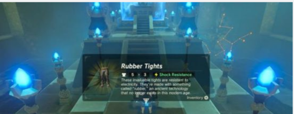 也需要打聖殿,位置在雨林馬廄的東南方向,地圖能看到「Calora Lake」南邊的高台上,聖殿叫「Qukah Nata Shrine」,因為聖殿被一層混凝土包住了,所以正常看就是個土包,往下走能看到一個鳥人,跟他對話,接任務,然後可以再跑過去把引雷的武器扔在聖殿上面,等雷來,然後就可以進入聖殿了,聖殿沒有任何難困,進去直接拿褲子。
