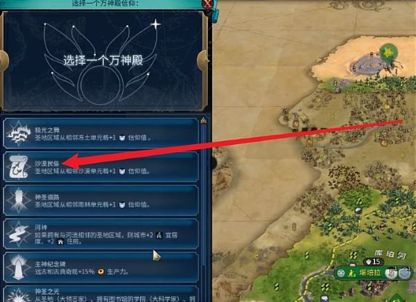 3、再點擊【萬神殿信仰】(如圖所示為沙漠地區選擇);