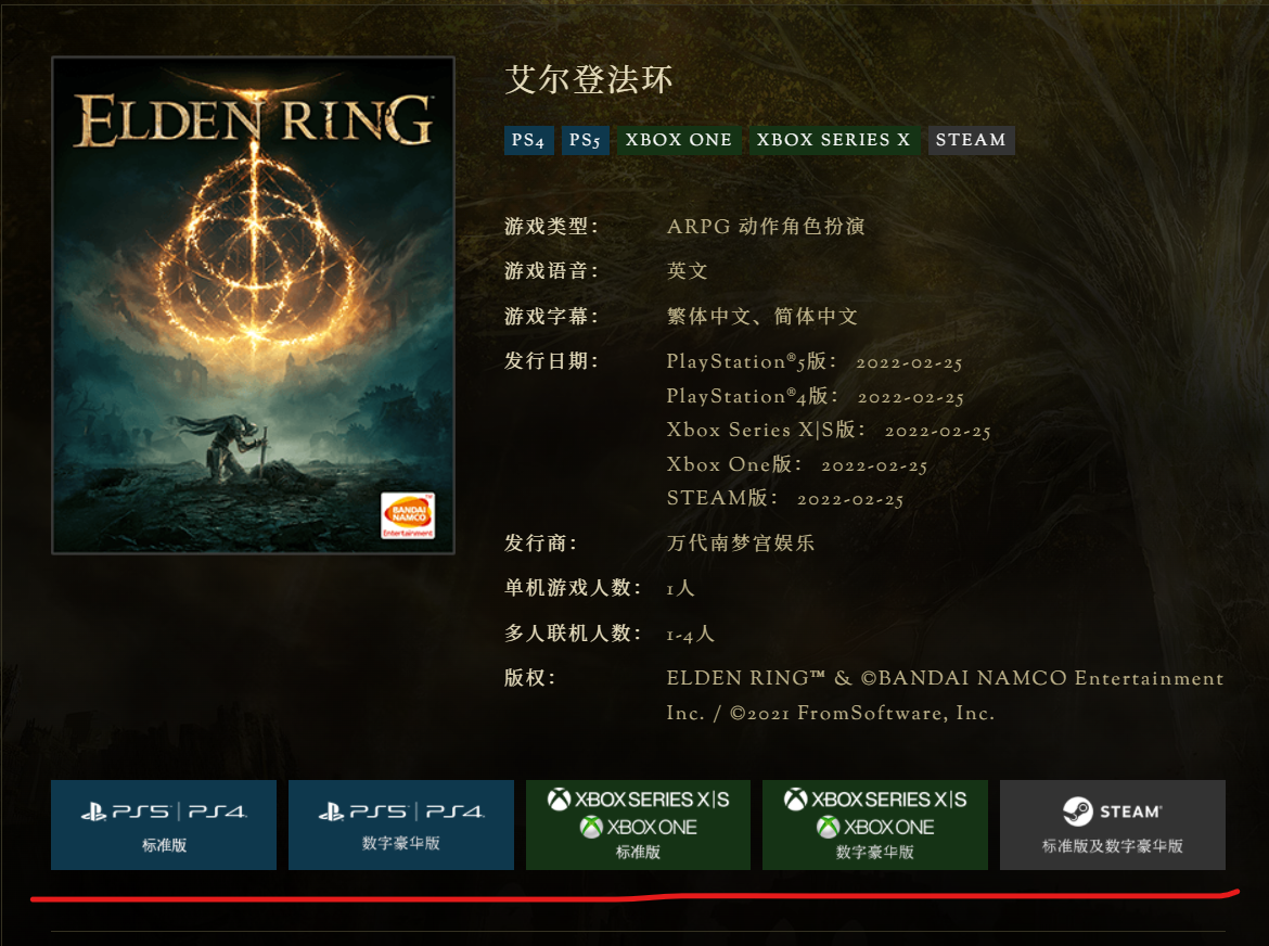目前艾爾登法環已經在Steam、Microsoft Windows、PlayStation 4、PlayStation 5、Xbox One、Xbox Series X/S上發行,所以我們能通過電腦和PS4,PS5還有XBOX手柄玩