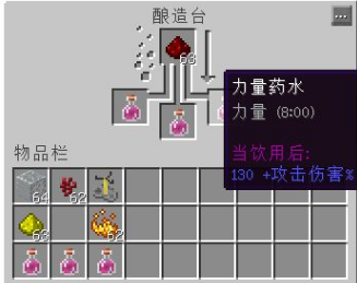 5.煉製好粗製的葯水後,我們用烈焰粉對粗製的葯水進行加工,一段時間後粗製的葯水就變了力量葯水了,烈焰粉可以在下界打烈焰人獲得。