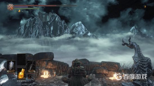 動畫後被送到古龍頂端,往前走左側的樹下撿取竭力戰士的靈魂X1。