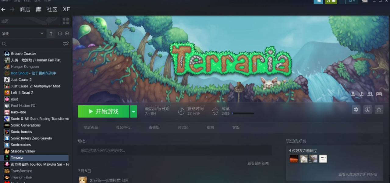 1.首先,我們需要打開Steam的界面,並切換到泰拉瑞亞的界面當中。
