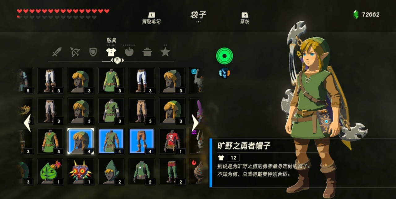 大家好,曠野之勇者套裝是本作塞爾達傳說中的紀念套裝,雖然這套裝備的屬性很一般,但是它卻是遊戲中必不可少的,因為綠帽傳統是不能丟的,本期內容就給大家介紹如何獲得曠野之勇者套裝的方法和玩法詳解。