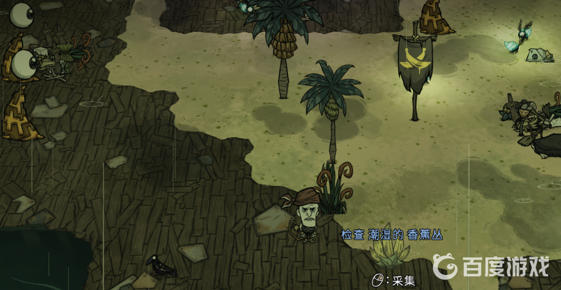 1、首先,進入饑荒,來到猴子島。殺害猴子後會獲得詛咒,找到香蕉,採集香蕉。