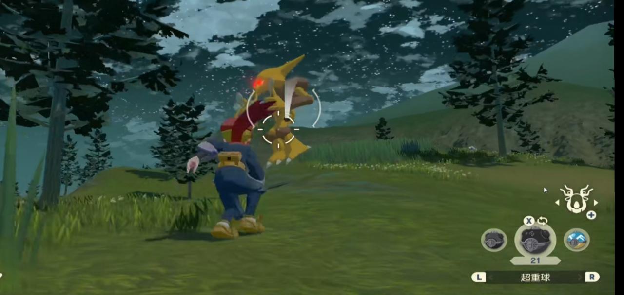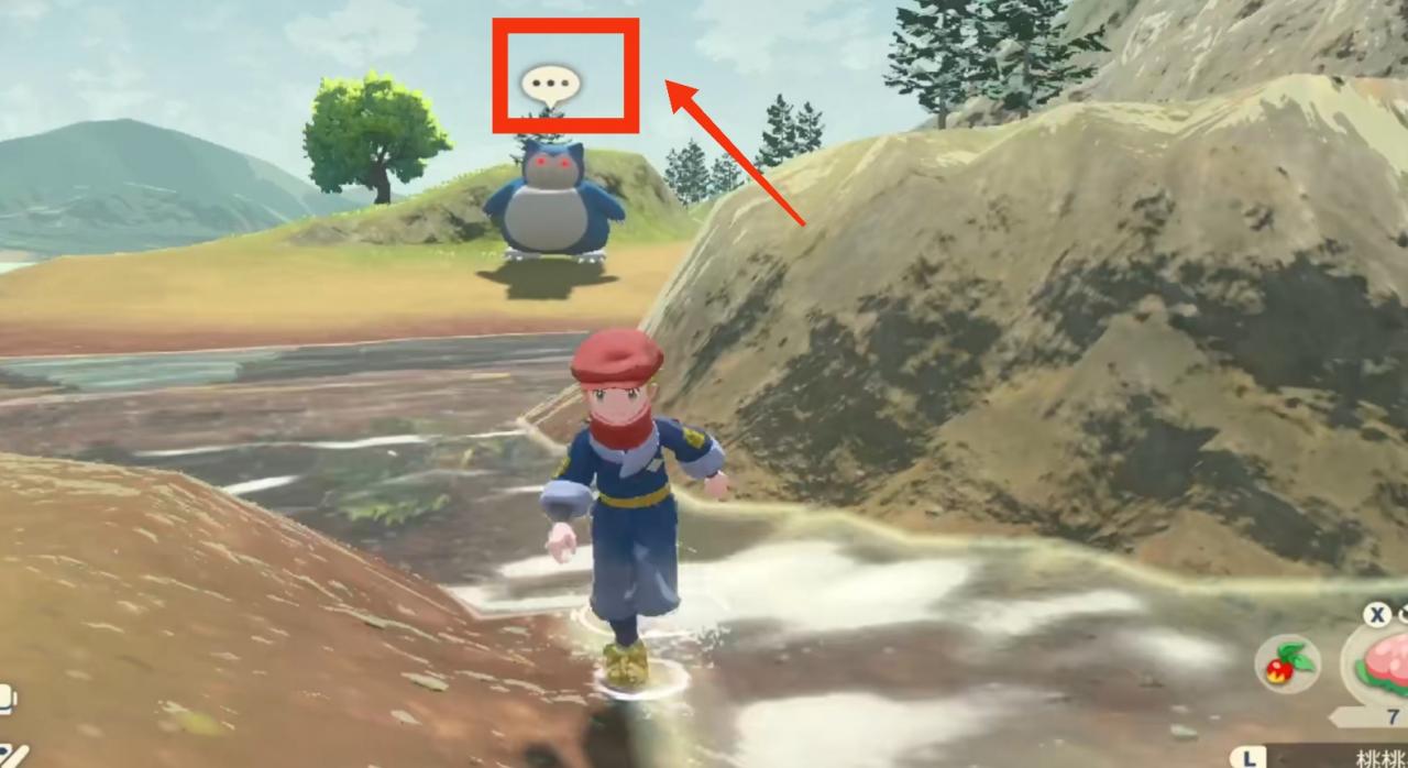 2.找到霸主寶可夢之後,在它的周圍,可以被他看到頭上帶有三個點,但是不能走的太近被他發現,就在他旁邊向她拋出食物果子,引誘他吃果子的時候,扔出沉重球捕捉他。