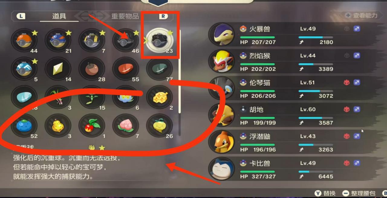 1.首先准備好一些食物果子和沉重球(捕捉到的幾率較大)。
