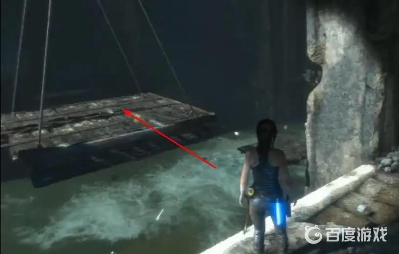 2、跳到對面被挖開的洞里,這時會看到一塊被水沖起來的木板,跳上去利用水的流速將其推進到靠近柵欄的地方,這樣就可以游到你之前打落的木板上了