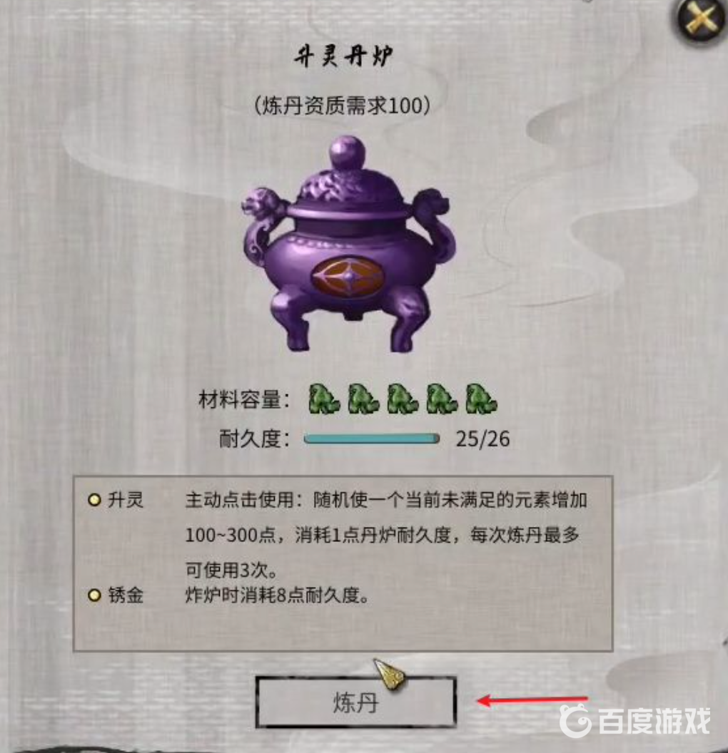 5、我們需要給丹爐進行升靈,純度越高,煉製成功的機率也越高。