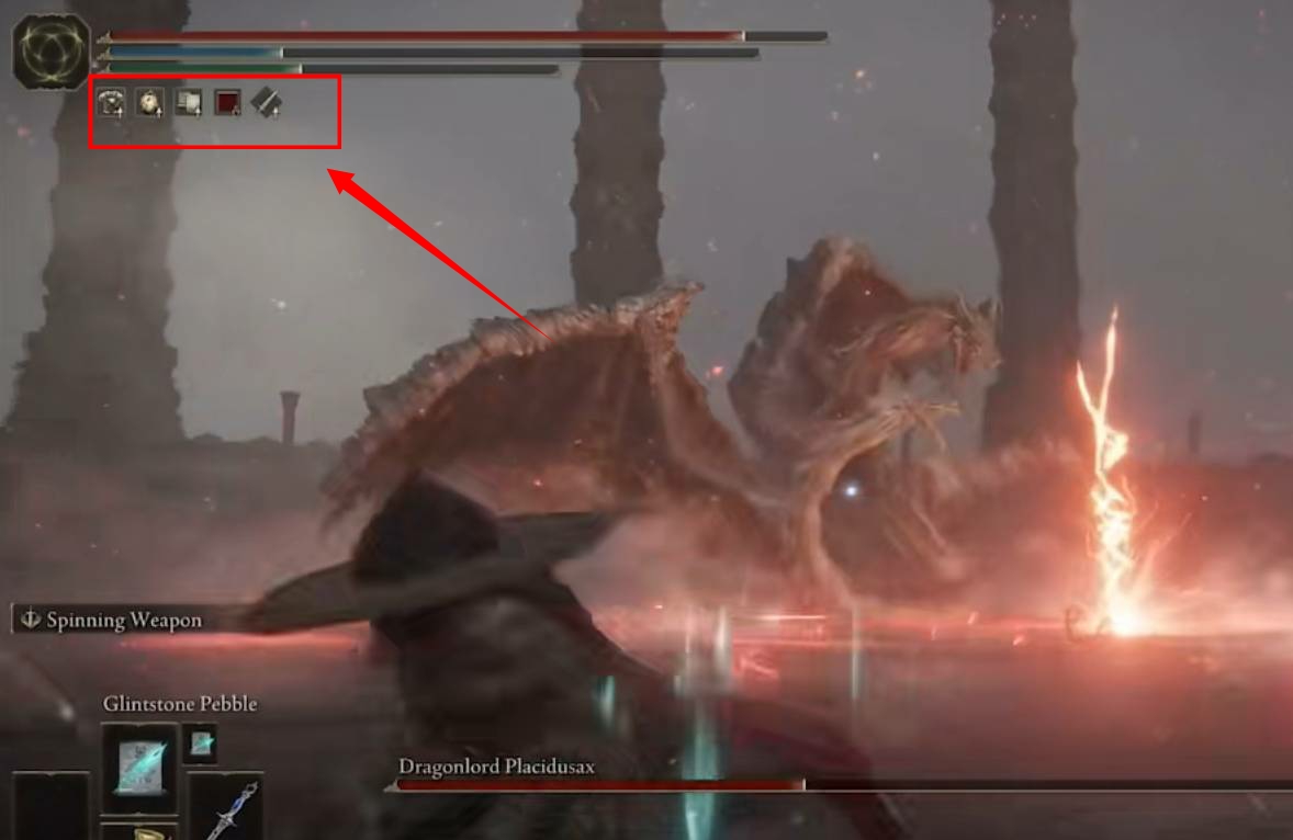 首頁 艾爾登法環 問答 艾爾登法環buff怎麼看? 2022-07-01 屬性buff位置在人物精力條下面。buff不能在狀態看效果是什麼,只能靠看圖標形狀去猜他的效果,如圖下所示。屬性buff在屏幕的左上方。