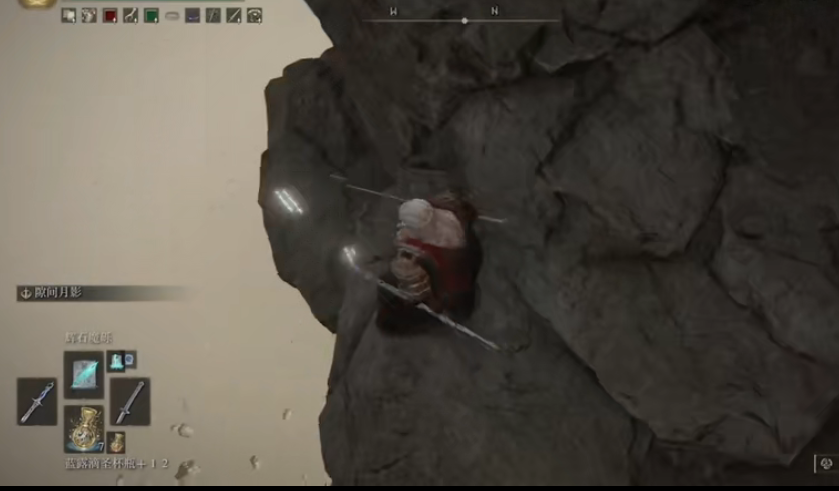 4、然後跟著石頭方嚮往前走,走到有坑的位置出現有躺下的按鈕提示,隨後躺下等過場動畫。