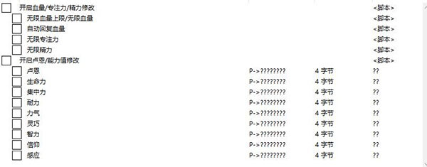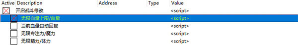 7.使用修改項,如圖開啟無限血量之前先開啟戰鬥修改,有紅色的X說明開啟了,修改屬性也同理。