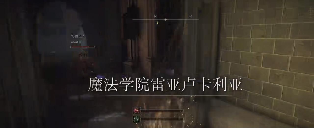 2、進入魔法學院雷亞盧卡利亞後,你會發現主殿門口有位叫勾指主人的人攔住你,你需要打敗他。