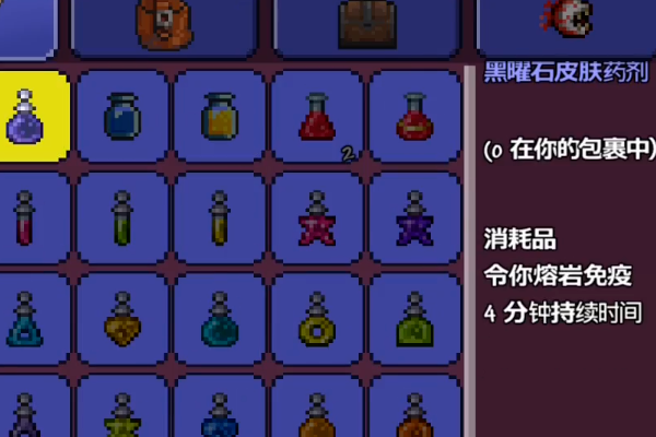 泰拉瑞亞黑曜石藥劑製作所需的材料: