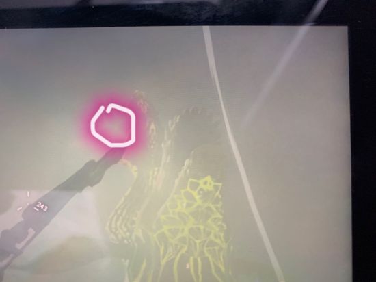 2、雷龍出現的位置有兩種,第一種是從側面出來的,龍從水裡出來的時間一般在你休息完可以操作了之後還要晚個2秒時間出來,弓盡量射在紅圈靠頂上的位置就行了。