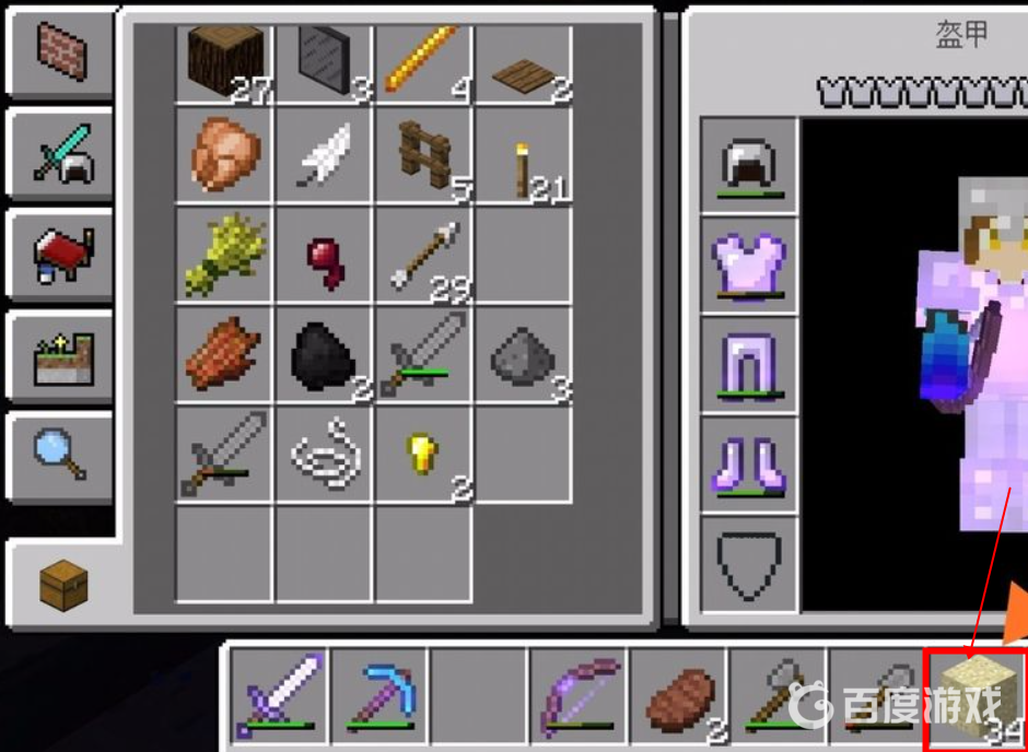 2、獲得橡木塊之後,我們用橡木塊合成像木板合成的越多越好,如下圖所示。