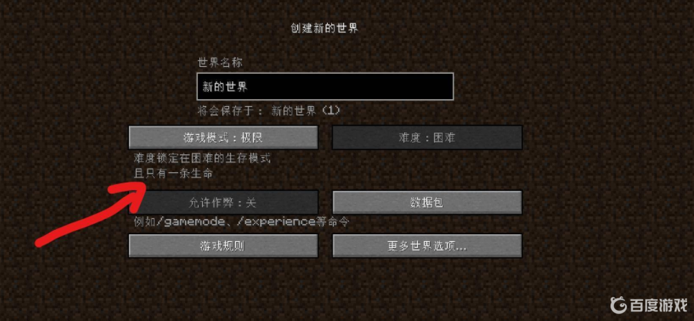 首頁 我的世界 問答 網易版mc有極限生存嗎? 2023-02-10 1.打開我的世界,在開始界面點擊單人遊戲。2.進入後,點擊創建新的世界。3.將遊戲模式選為極限即可,注意極限模式生命值只有一條,且遊戲難度為困難,需要玩家在遊玩時更加小心謹慎。