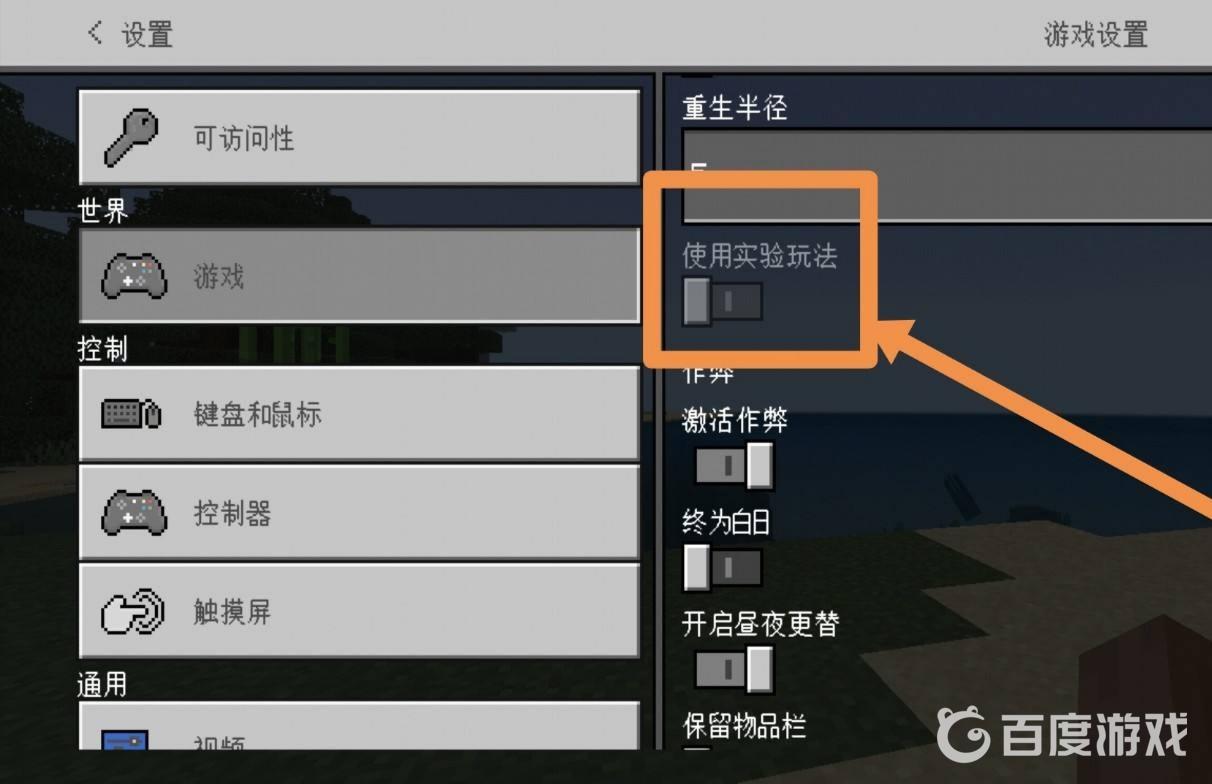 首頁 我的世界 問答 我的世界2021實驗玩法怎麼開? 2023-02-10 1、點擊如圖右側方框中的」設置「。2、打開設置裡面的遊戲。選擇設置中的」遊戲「設置,在如圖右側頁面手指往下滑。3、找到實驗玩法,打開。往下滑直到找到」使用實驗玩法「,點擊打開即可。